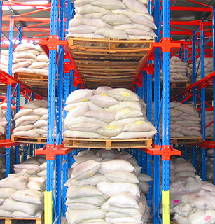 贯通式货架广泛应用于 用于大批量、少品种的货物存储,这类货物包装统一、产品单一,如:食品、烟草、冷库等库房。
